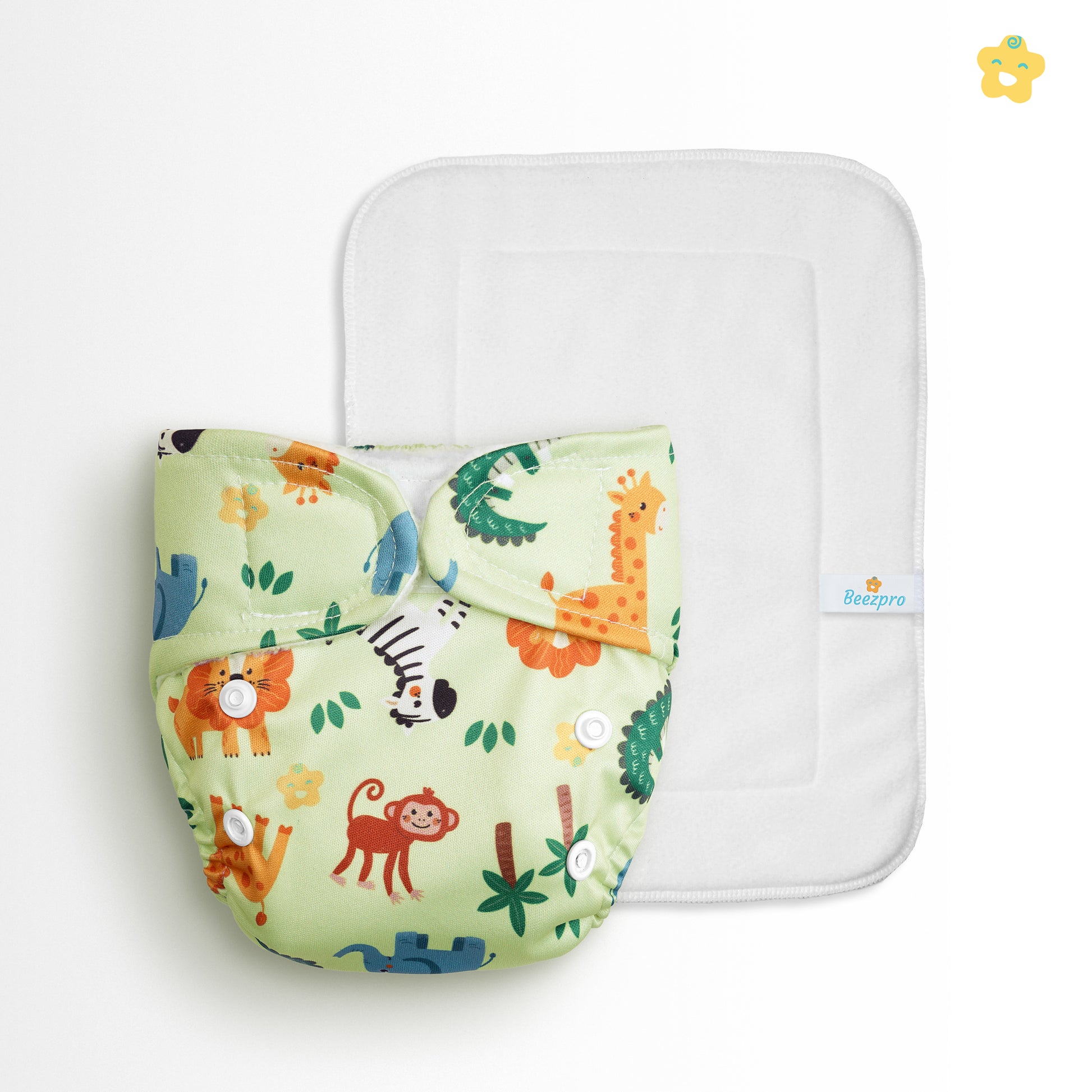 New Born Reusuable Cloth Diaper(Light Green Jungle Animals)