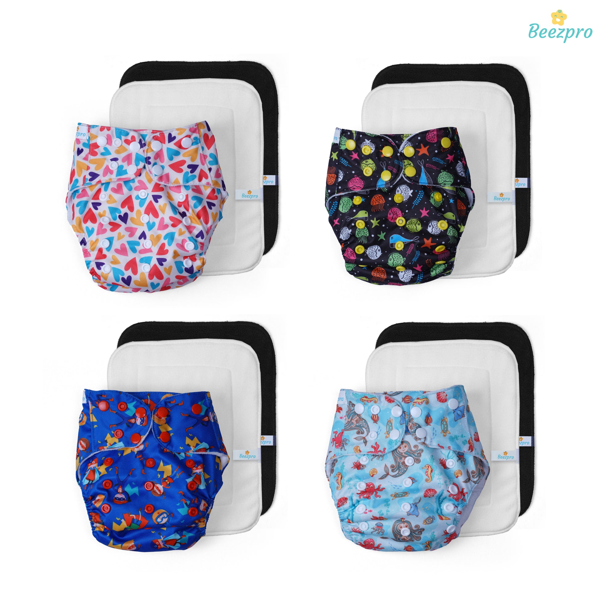(Pack of 4) Reusuable cloth diapers (Mixed Colours Only)